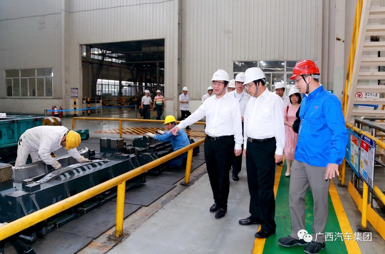 5月3日上午,自治區(qū)副主席、九三學(xué)社廣西區(qū)委主任委員李彬帶隊(duì)深入公司沖焊件廠調(diào)研,集團(tuán)總裁袁智軍、總裁助理韋明鳳陪同參加。