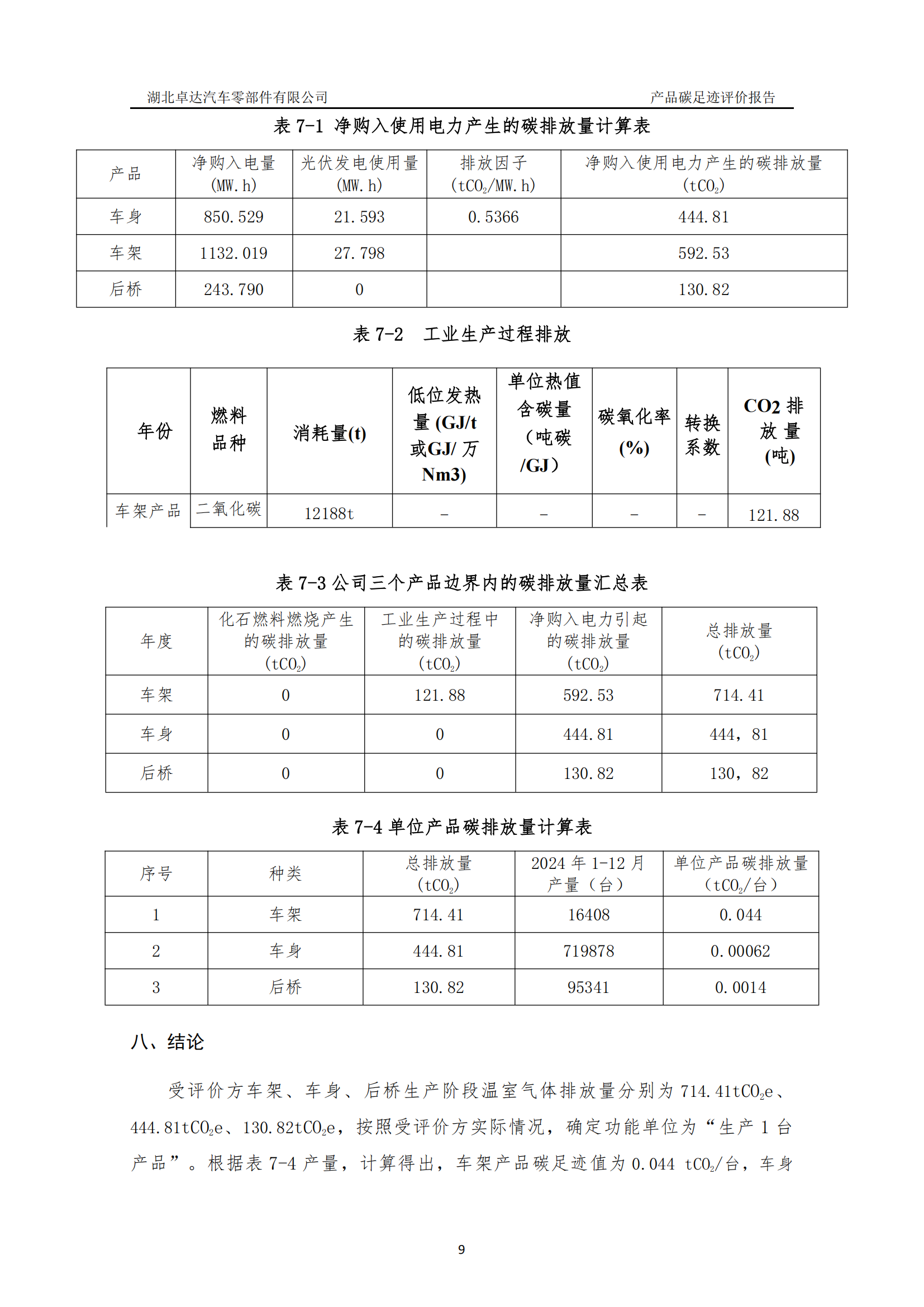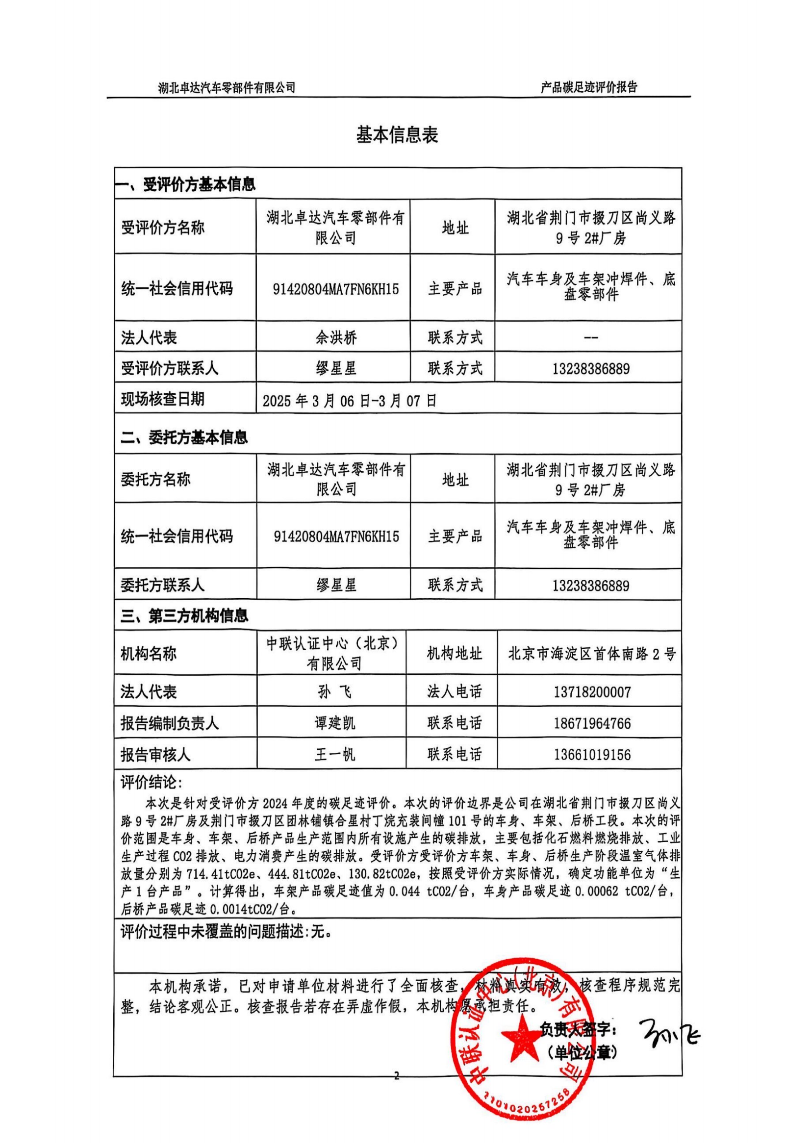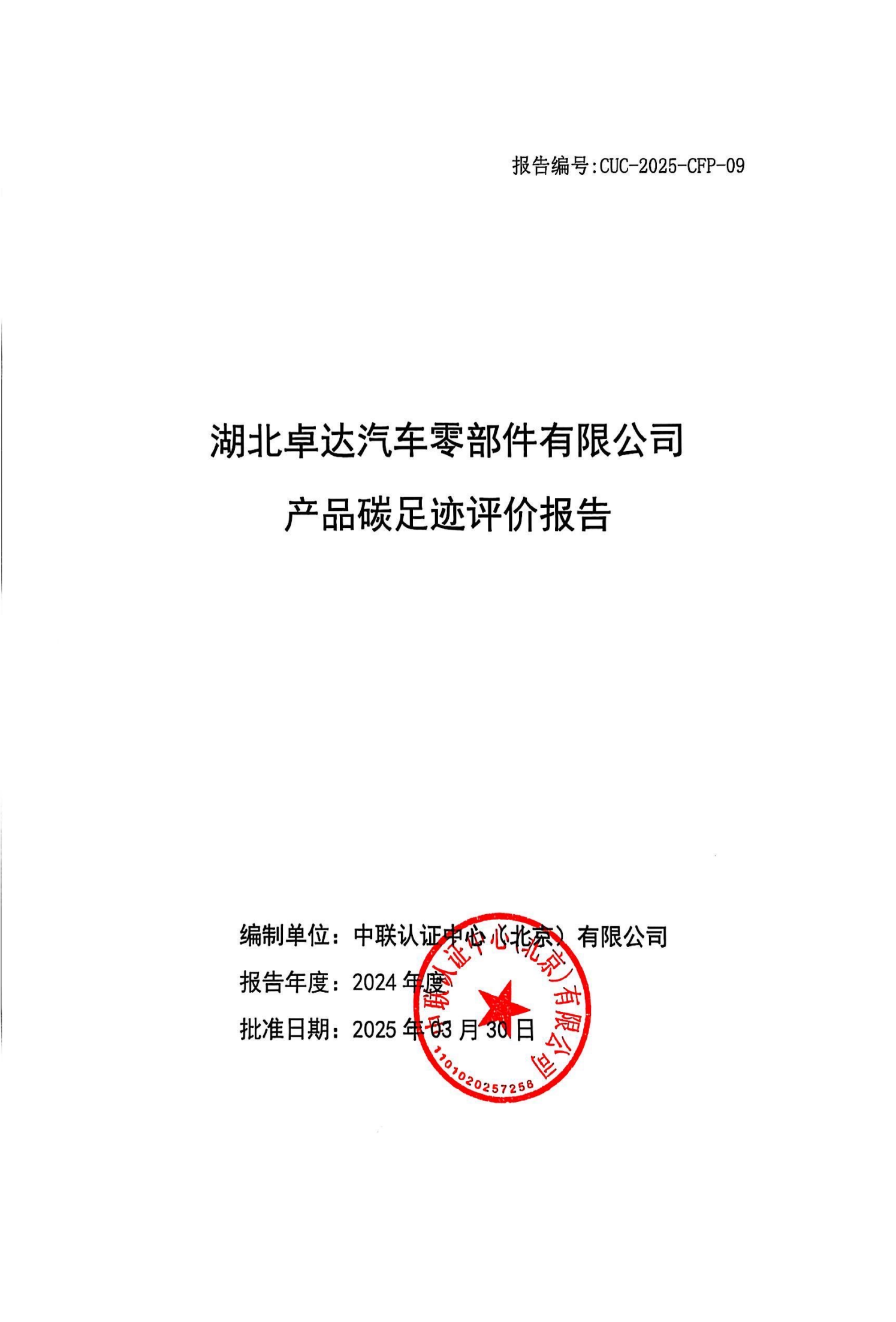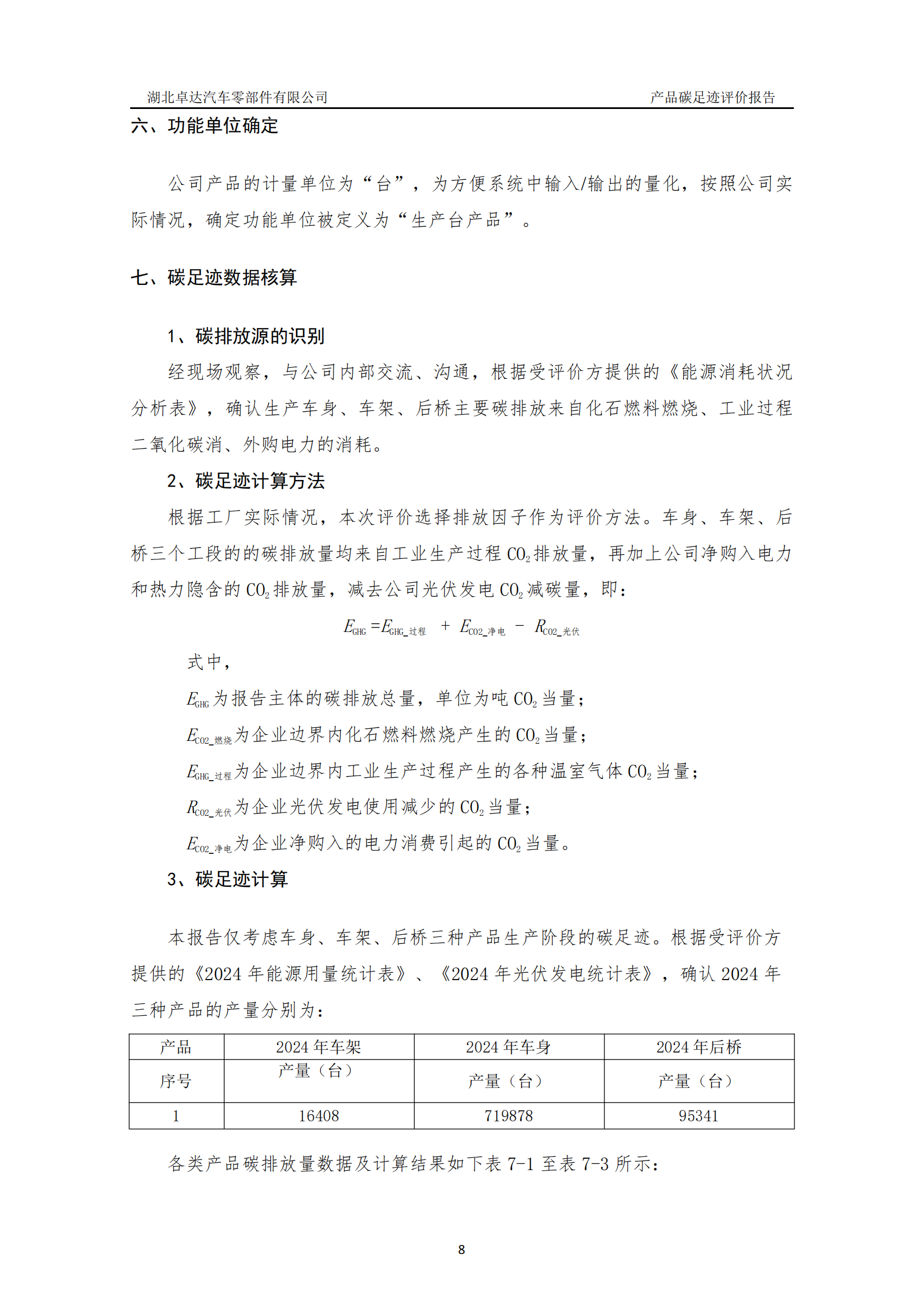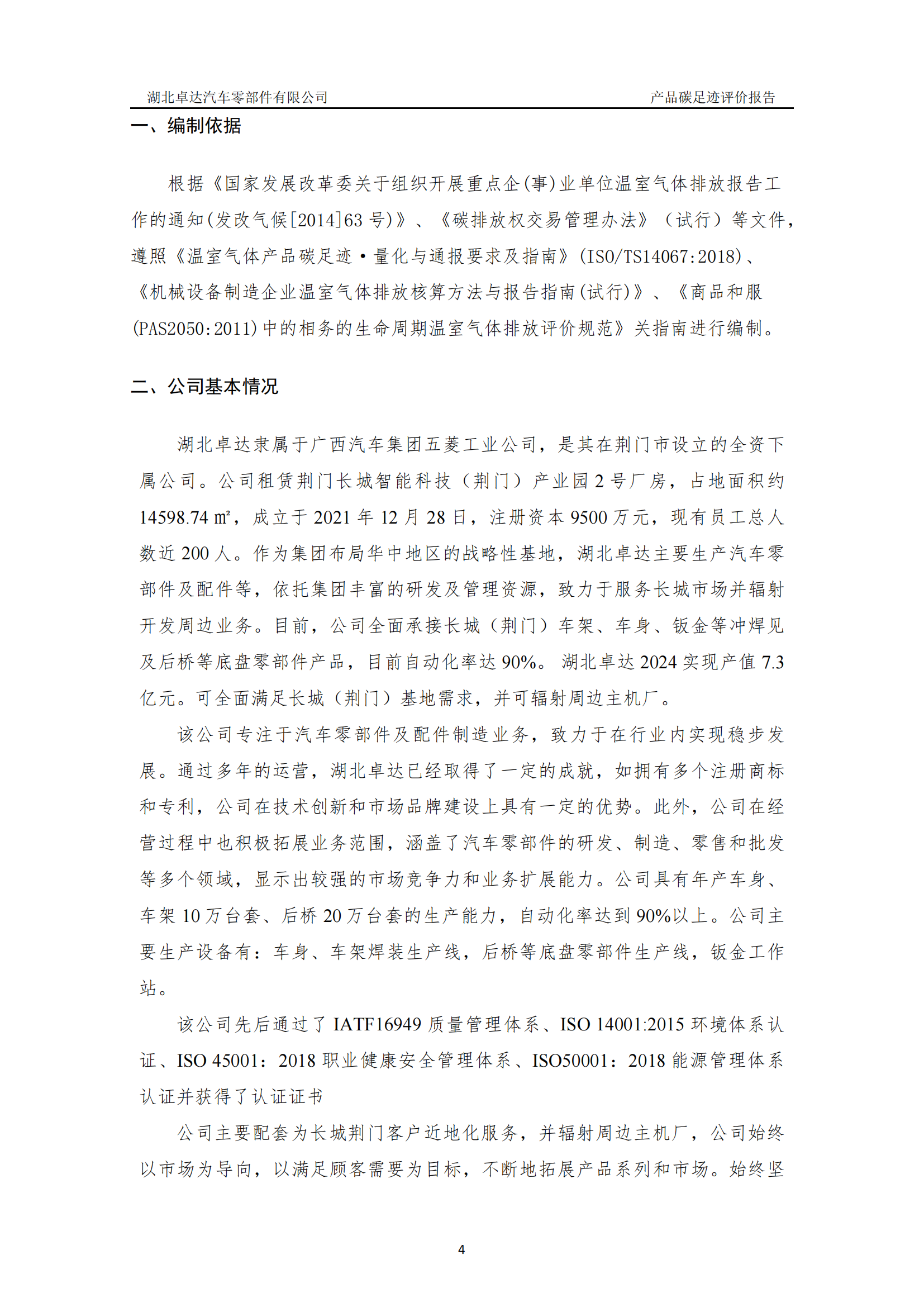 湖北卓達(dá)汽車零部件有限公司產(chǎn)品碳足跡評價報告