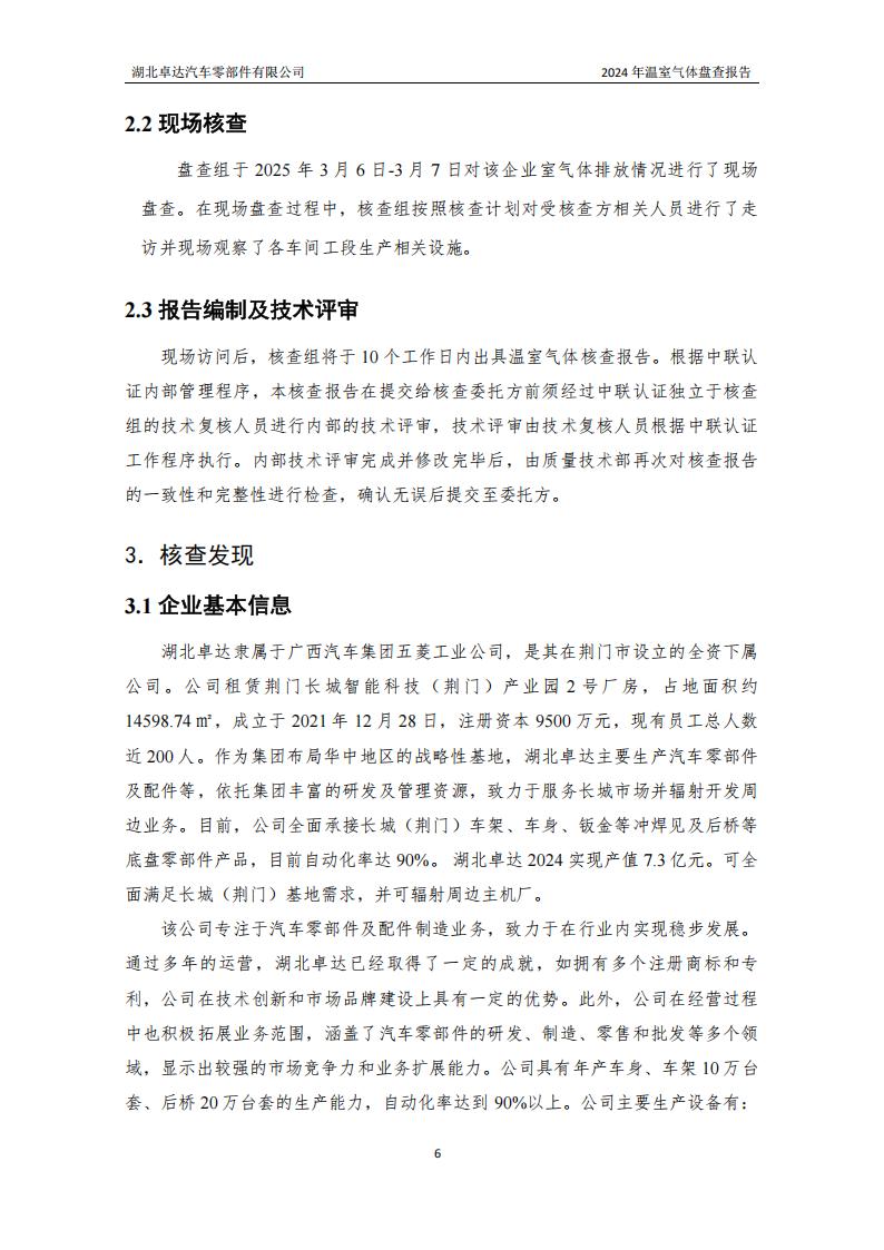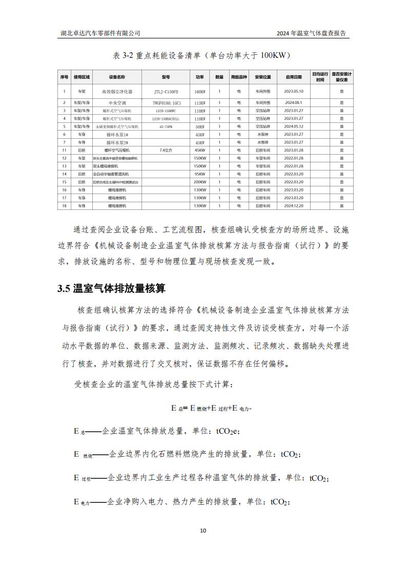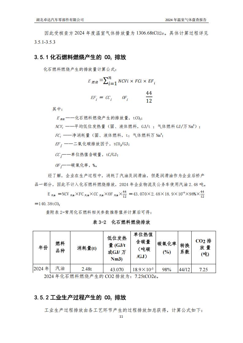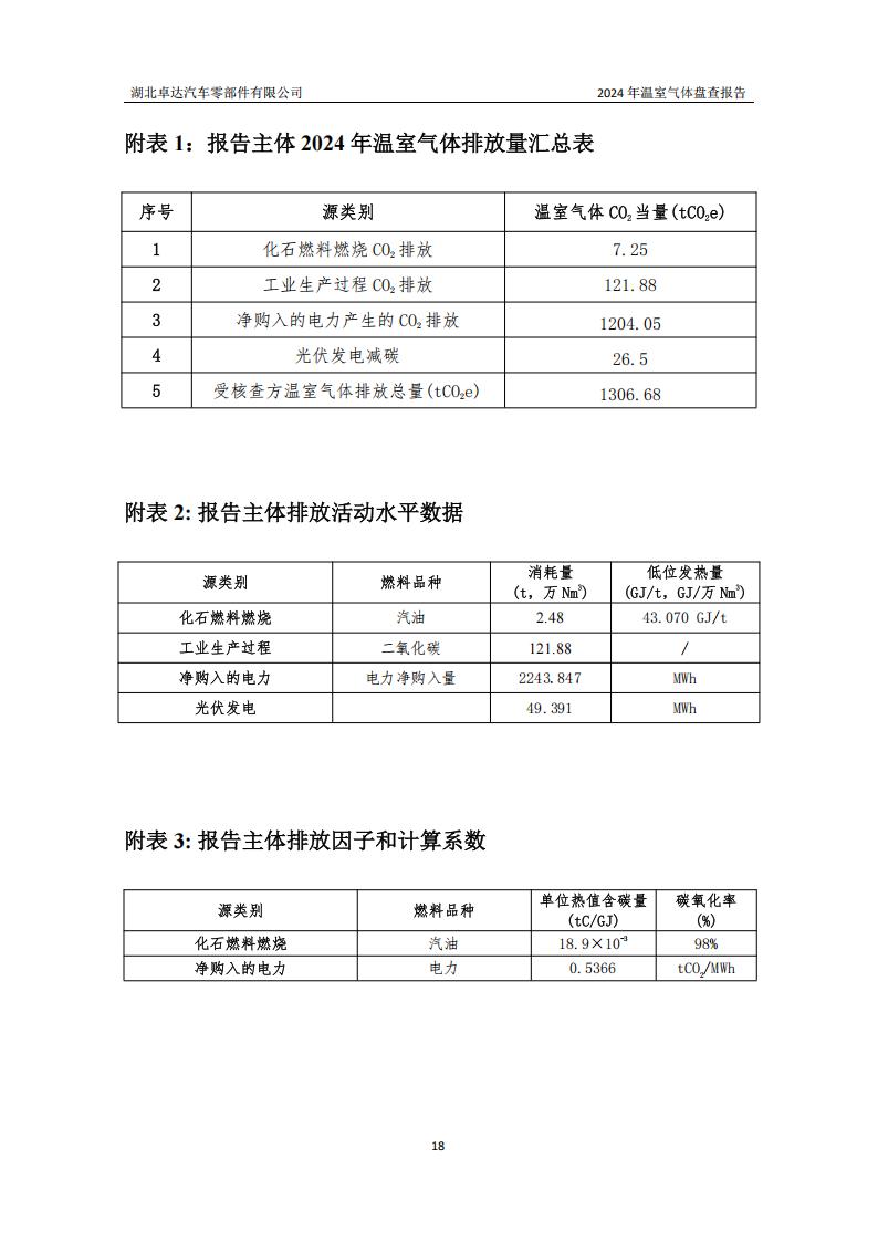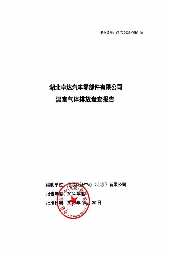 湖北卓達(dá)汽車零部件有限公司溫室氣體排放盤查報(bào)告